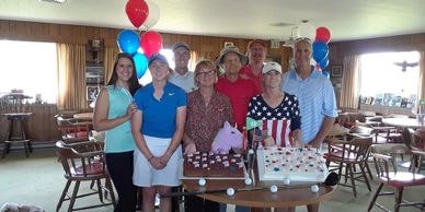 We have hosted birthday, anniversary parties and bowling banquets. We offer a simple banquet menu of: cole slaw, baked beans, toasted buns, fried chicken and ham. Many of our outings use our dining room to feed their golfers.